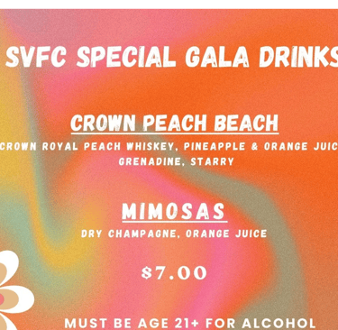 Ticket required for admission to the event. Winner need not be present to win. All prizes are final & no substitutions will be made. Any unsold tickets or prizes not claimed after 30 days become the property of SVFC. Ticket holders must be 16+ years of age. 21+ must have proper ID for drink bracelet. No outside drinks permitted.